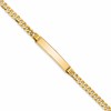 Specifications: Material: Primary - Purity:10K|Stone Quantity_1:1|Length of Item:8 in|Stone Setting_1:|Chain Length:8 in|Chain Type:Curb|Chain Width:3.33 mm|Charm/Element Length:28.45 mm|Charm/Element Width:5.38 mm|Clasp /Connector:Lobster|Feature:Solid|Material: Primary:Gold|Stone Shape_1:TBD|Stone Size_1:6.75 x 3.9 mm|Width of Item:5.38 mm|Engravable:Yes|Product Type:Jewelry|Jewelry Type:Chains|Sold By Unit:Each|Bracelet Type:ID Bracelets|Material: Primary - Color:Yellow|Items per Pack:1|Stone Type (Other)_1:Side Stone Mounting(s)