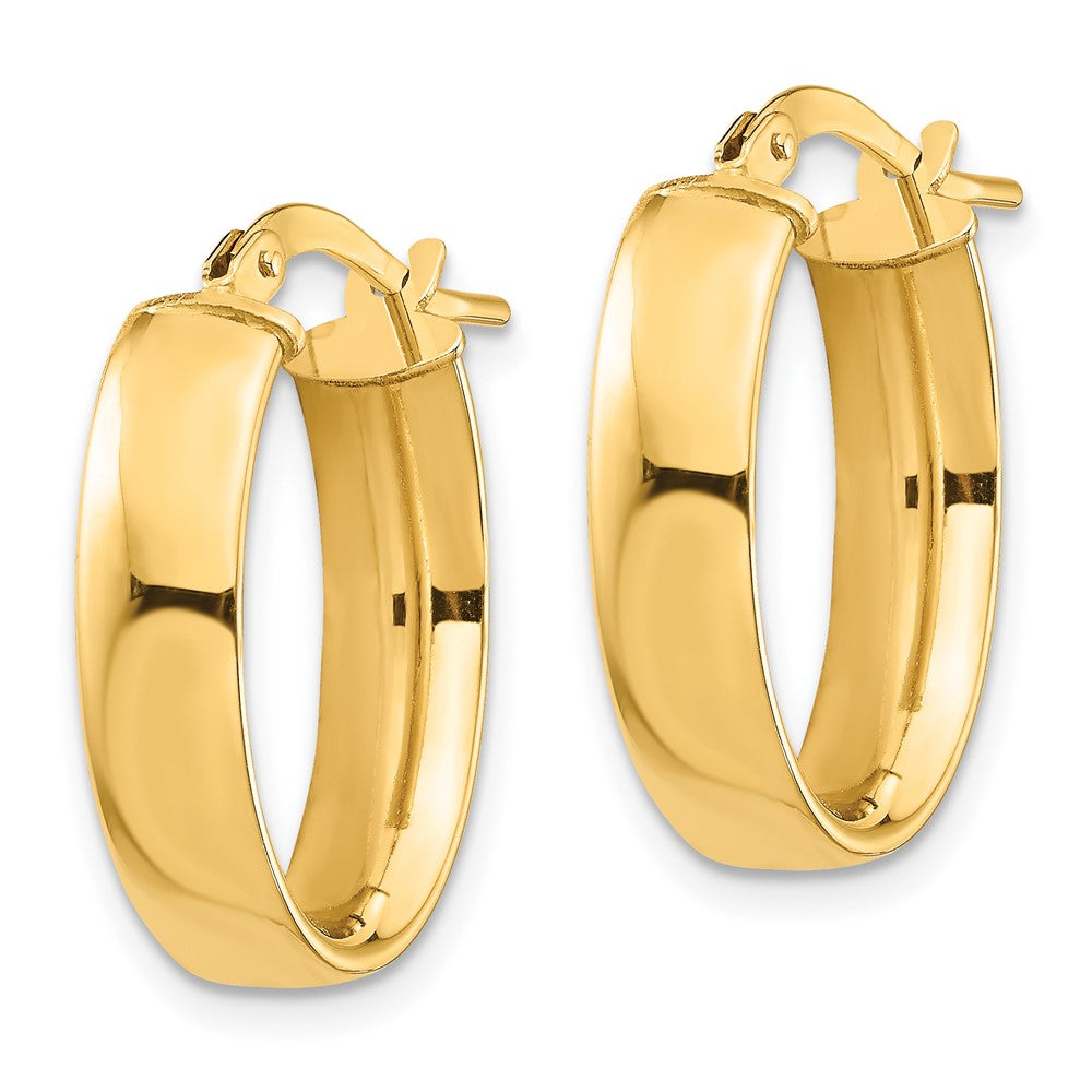 Specifications: Material: Primary - Purity:10K|Finish:Polished|Length of Item:20.5 mm|Feature:Hollow|Material: Primary:Gold|Width of Item:5 mm|Product Type:Jewelry|Jewelry Type:Earrings|Sold By Unit:Pair|Gender:Women's|Material: Primary - Color:Yellow|Earring Closure:Wire & Clutch|Earring Type:Hoop|Diameter Outside:14 x 20.5|Diameter Outside U/M:mm