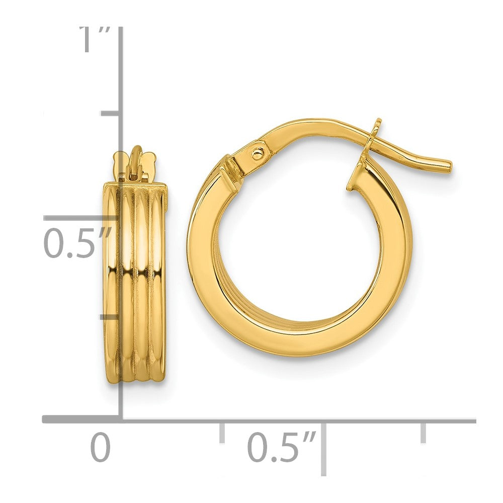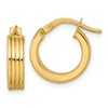 10K Polished and Grooved 4.00 x 15mm Tube Hoop Earrings