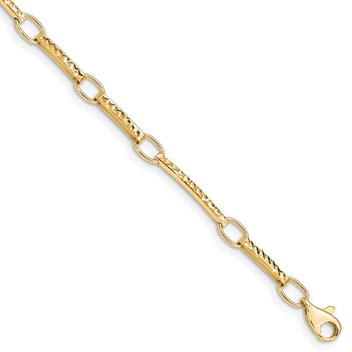10k Polished and Textured Fancy Link Bracelet