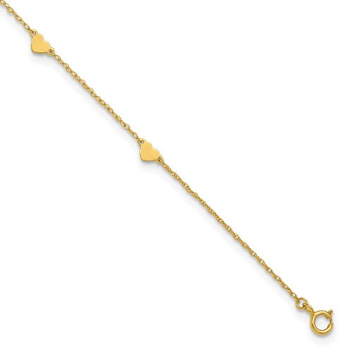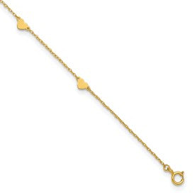10k Polished Heart 6-Station 10 inch Anklet