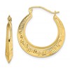 Specifications: Material: Primary - Purity:10K|Finish:Polished|Length of Item:17 mm|Material: Primary:Gold|Width of Item:3 mm|Product Type:Jewelry|Jewelry Type:Earrings|Sold By Unit:Pair|Gender:Women's|Material: Primary - Color:Yellow|Earring Closure:Wire & Clutch|Earring Type:Hoop|Earring Style:Shrimp / Creole