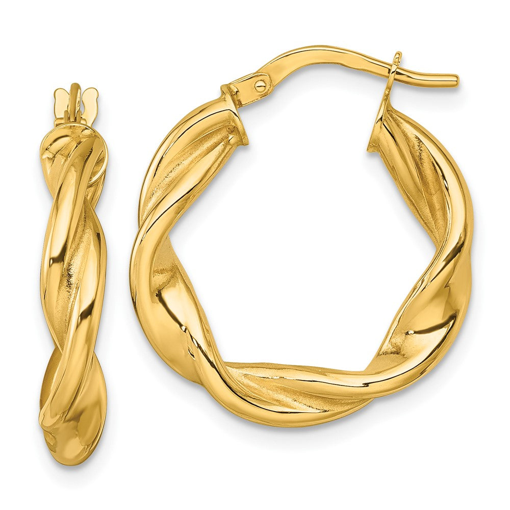 10K Polished Twisted 4.00 x 22mm Tube Hoop Earrings