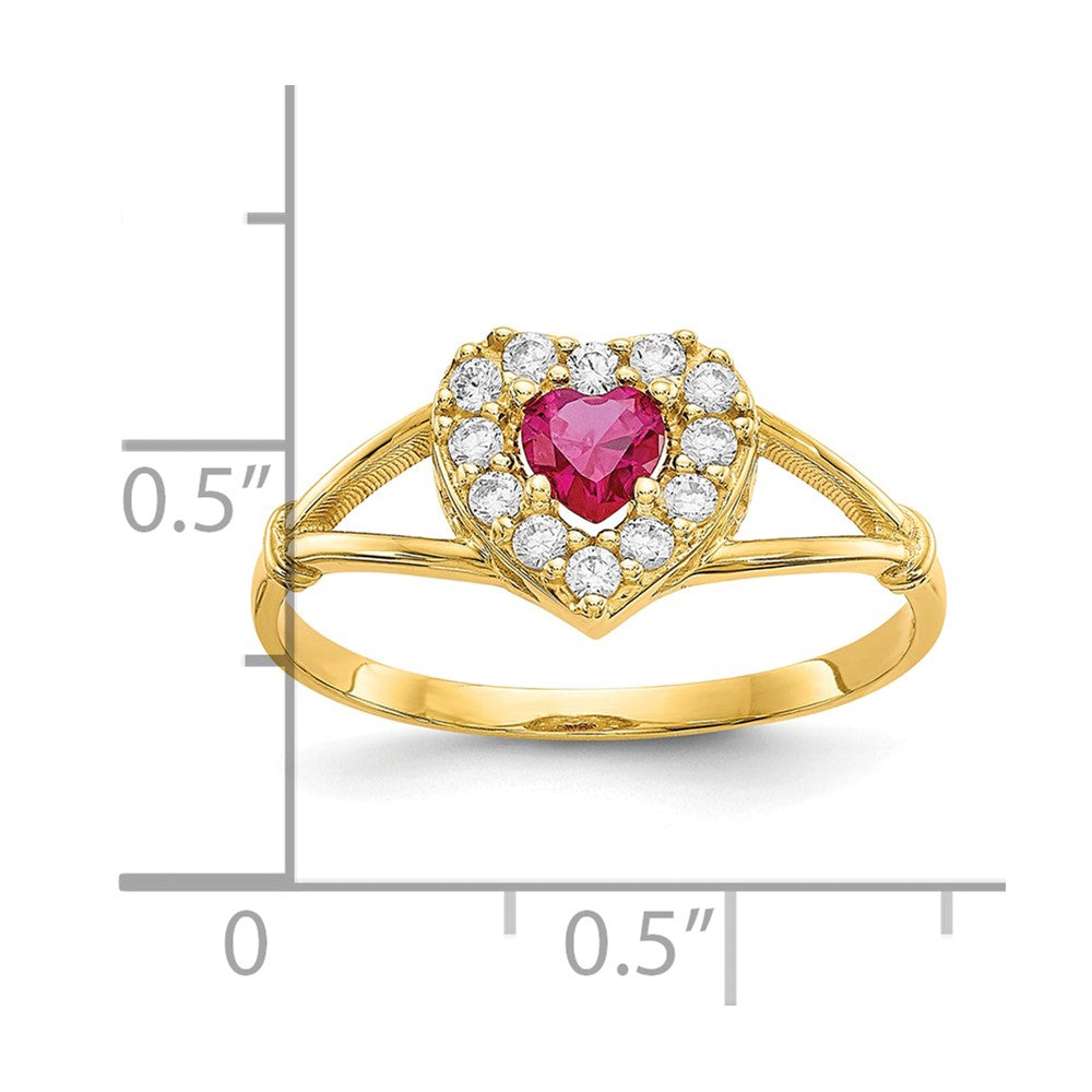 Specifications: Material: Primary - Purity:10K|Finish:Polished|Stone Type_1:Cubic Zirconia (CZ)|Stone Type_2:Cubic Zirconia (CZ)|Stone Color_1:White|Stone Color_2:Red|Band Width:1 mm|Feature:Solid|Manufacturing Process:Casted|Material: Primary:Gold|Stone Treatment_1:Synthetic|Stone Treatment_2:Synthetic|Product Type:Jewelry|Jewelry Type:Rings|Sold By Unit:Each|Material: Primary - Color:Yellow|Ring Type:Themed|Ring Top Length:9 mm|Stone Creation Method_1:Synthetic|Stone Creation Method_2:Synthetic