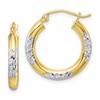 10K & Rhodium Diamond Cut 3mm Hoop Earrings