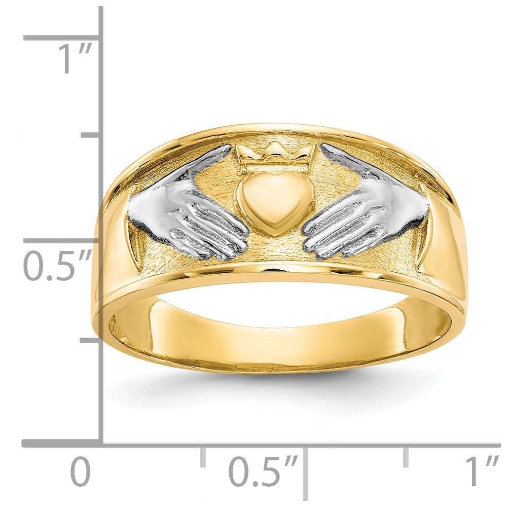 Specifications: Material: Primary - Purity:10K|Finish:Polished|Material: Accents:Rhodium|Material: Accent Color 1:White|Band Width:4 to 10 mm (tapered)|Feature:Solid|Manufacturing Process:Casted|Material: Primary:Gold|Product Type:Jewelry|Jewelry Type:Rings|Sold By Unit:Each|Material: Primary - Color:Yellow|Ring Type:Themed