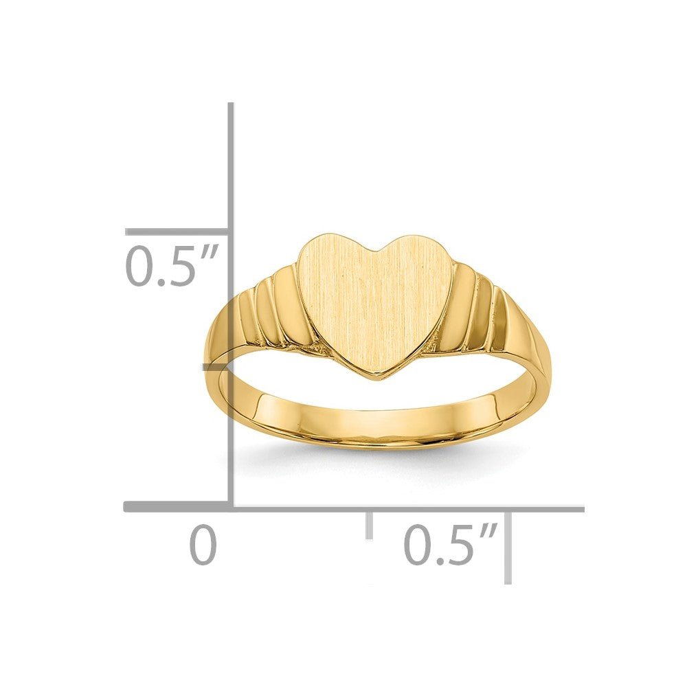 Specifications: Material: Primary - Purity:10K|Band Width:1 to 4 mm (tapered)|Feature:Childrens|Manufacturing Process:Casted|Material: Primary:Gold|Width of Item:1 to 4 mm (tapered)|Engravable:Yes|Product Type:Jewelry|Jewelry Type:Rings|Sold By Unit:Each|Texture:Satin|Material: Primary - Color:Yellow|Ring Type:Baby & Children's|Ring Top Length:7 mm|Ring Top Width:7 mm
