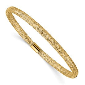 Specifications: Material: Primary - Purity:10K|Finish:Polished|Length of Item:7 in|Chain Length:7 in|Chain Type:Mesh|Clasp /Connector:Slip On (No Clasp)|Feature:Stretch|Material: Primary:Gold|Width of Item:4 mm|Product Type:Jewelry|Jewelry Type:Chains|Sold By Unit:Each|Bracelet Type:Fancy|Gender:Women's|Texture:Mesh|Profile Type:Round|Material: Primary - Color:Yellow|Edge Type:Rounded|Feature 2:Hollow