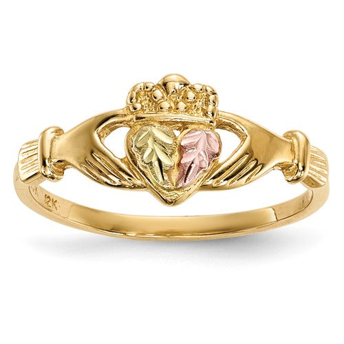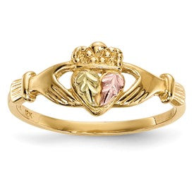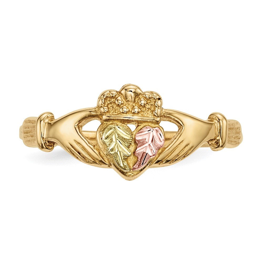 10k Tri-Color Black Hills Gold Claddagh Ring