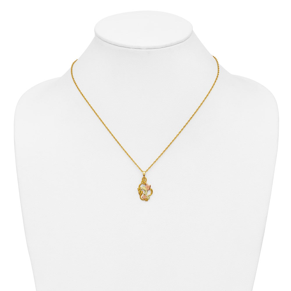 Specifications: Material: Primary - Purity:10K|Clasp /Connector:Spring Ring|Feature:Solid|Manufacturing Process:Casted|Material: Primary:Gold|Item Weight U/M:gm|Product Type:Jewelry|Jewelry Type:Necklaces|Sold By Unit:Each|Necklace Type:Necklace with Pendants|Pendant/Charm Type:Themed|Material: Primary - Color:Tri-Color