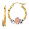 Specifications: Material: Primary - Purity:10K|Finish:Polished & Brushed|Length of Item:22 mm|Feature:Solid|Material: Primary:Gold|Width of Item:4 mm|Product Type:Jewelry|Jewelry Type:Earrings|Sold By Unit:Pair|Gender:Women's|Texture:Diamond-cut|Material: Primary - Color:Tri-Color|Earring Closure:Wire & Clutch|Earring Type:Hoop|Diameter Outside:19.5 x 22|Diameter Outside U/M:mm