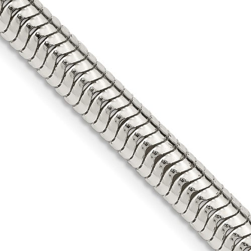 Specifications: Material: Primary - Purity:925|Finish:Polished|Length of Item:18 in|Chain Length:18 in|Chain Type:Snake|Chain Width:6 mm|Clasp /Connector:Lobster|Coating:Anti-tarnish|Feature:Solid|Manufacturing Process:Machine Made|Material: Primary:Sterling Silver|Item Weight U/M:gm|Width of Item:6 mm|Product Type:Jewelry|Jewelry Type:Necklaces|Sold By Unit:Each|Necklace Type:Chain Styles|Gender:Unisex|Profile Type:Round|Material: Primary - Color:White