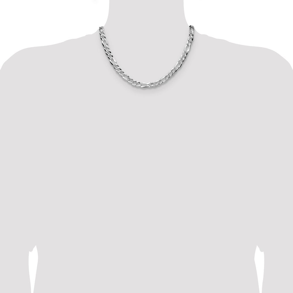 Specifications: Material: Primary - Purity:925|Finish:Polished|Length of Item:18 in|Chain Length:18 in|Chain Thickness:1.4 mm|Chain Type:Figaro|Chain Width:7 mm|Clasp /Connector:Lobster|Clasp Thickness (Female end):2.8 mm|Clasp Thickness (Male end):2.9 mm|Clasp Width (Female end):6.1 mm|Clasp Width (Male end):6.3 mm|Material: Primary:Sterling Silver|Width of Item:7 mm|Product Type:Jewelry|Jewelry Type:Chains|Sold By Unit:Each|Necklace Type:Chain Styles|Gender:Unisex|Texture:Diamond-cut|Profile Type:Flat|Material: Primary - Color:White