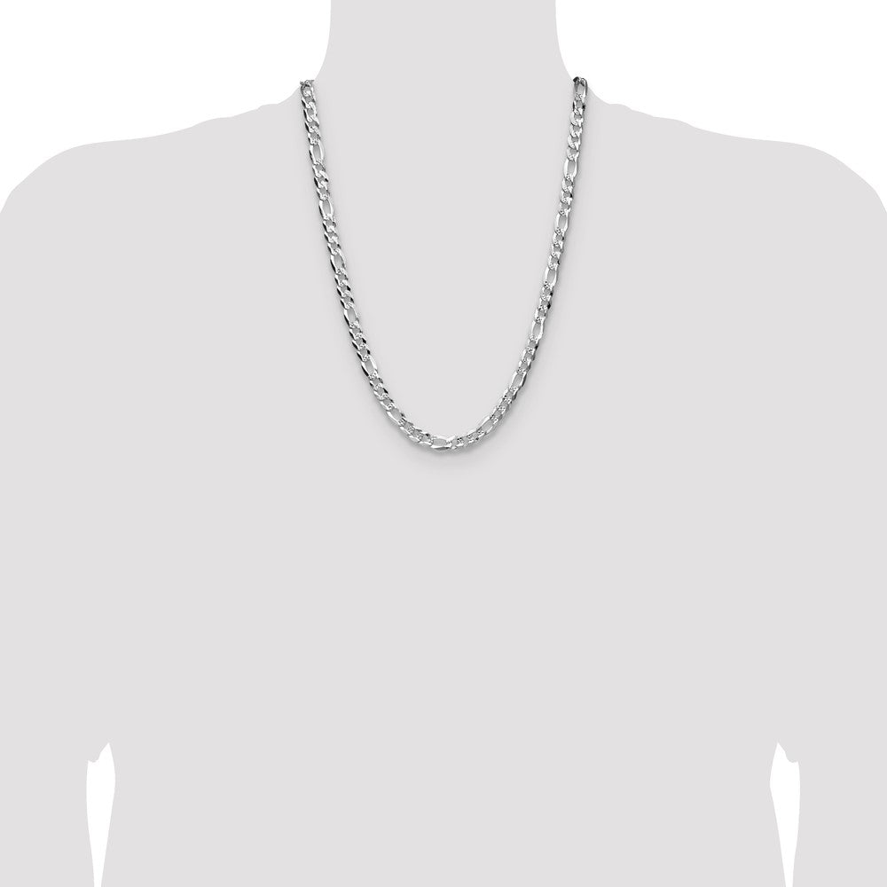 Specifications: Material: Primary - Purity:925|Finish:Polished|Length of Item:24 in|Chain Length:24 in|Chain Thickness:1.4 mm|Chain Type:Figaro|Chain Width:7 mm|Clasp /Connector:Lobster|Clasp Thickness (Female end):2.8 mm|Clasp Thickness (Male end):2.9 mm|Clasp Width (Female end):6.1 mm|Clasp Width (Male end):6.3 mm|Material: Primary:Sterling Silver|Width of Item:7 mm|Product Type:Jewelry|Jewelry Type:Chains|Sold By Unit:Each|Necklace Type:Chain Styles|Gender:Unisex|Texture:Diamond-cut|Profile Type:Flat|Material: Primary - Color:White
