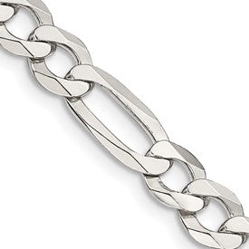 Sterling Silver 7.0mm Lightweight Flat Figaro Chain