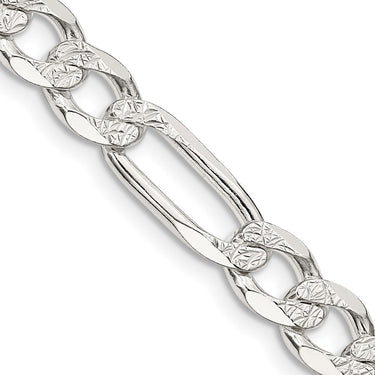 Specifications: Material: Primary - Purity:925|Finish:Polished|Length of Item:30 in|Chain Length:30 in|Chain Type:Figaro|Chain Width:7 mm|Clasp /Connector:Lobster|Coating:Anti-tarnish|Feature:Solid|Manufacturing Process:Casted|Material: Primary:Sterling Silver|Width of Item:7 mm|Product Type:Jewelry|Jewelry Type:Necklaces|Sold By Unit:Each|Necklace Type:Chain Styles|Gender:Unisex|Texture:Pave|Profile Type:Flat|Material: Primary - Color:White