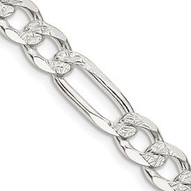 Specifications: Material: Primary - Purity:925|Finish:Polished|Length of Item:28 in|Chain Length:28 in|Chain Type:Figaro|Chain Width:7 mm|Clasp /Connector:Lobster|Coating:Anti-tarnish|Feature:Solid|Manufacturing Process:Casted|Material: Primary:Sterling Silver|Width of Item:7 mm|Product Type:Jewelry|Jewelry Type:Necklaces|Sold By Unit:Each|Necklace Type:Chain Styles|Gender:Unisex|Texture:Pave|Profile Type:Flat|Material: Primary - Color:White