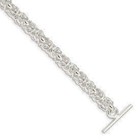 Specifications: Material: Primary - Purity:925|Finish:Polished|Length of Item:7.5 in|Chain Length:7.5 in|Chain Type:Link, Other|Chain Width:5.75 mm|Clasp /Connector:Toggle|Feature:Solid|Manufacturing Process:Hand Made|Material: Primary:Sterling Silver|Item Weight U/M:gm|Width of Item:5.75 mm|Product Type:Jewelry|Jewelry Type:Bracelets|Sold By Unit:Each|Bracelet Type:Fancy|Gender:Women's|Material: Primary - Color:White|Manufacturing Process 2:Casted