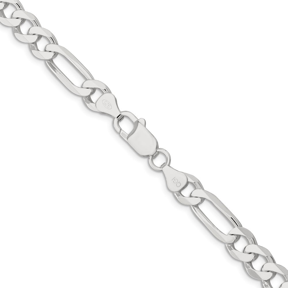 Specifications: Material: Primary - Purity:925|Finish:Polished|Length of Item:18 in|Chain Length:18 in|Chain Type:Figaro|Chain Width:7.5 mm|Clasp /Connector:Lobster|Clasp Thickness (Female end):3 mm|Clasp Thickness (Male end):2 mm|Clasp Width (Female end):5 mm|Clasp Width (Male end):6 mm|Coating:Anti-tarnish|Feature:Solid|Material: Primary:Sterling Silver|Width of Item:7.5 mm|Product Type:Jewelry|Jewelry Type:Chains|Sold By Unit:Each|Necklace Type:Chain Styles|Gender:Unisex|Material: Primary - Color:White