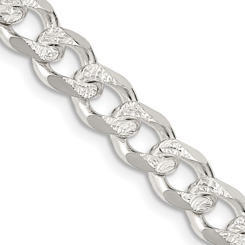 Specifications: Material: Primary - Purity:925|Finish:Polished|Length of Item:24 in|Chain Length:24 in|Chain Type:Curb|Chain Width:7.5 mm|Clasp /Connector:Lobster|Coating:Anti-tarnish|Feature:Solid|Manufacturing Process:Casted|Material: Primary:Sterling Silver|Width of Item:7.5 mm|Product Type:Jewelry|Jewelry Type:Necklaces|Sold By Unit:Each|Necklace Type:Chain Styles|Gender:Unisex|Texture:Pave|Material: Primary - Color:White