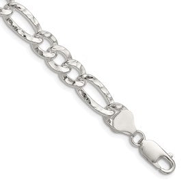 Sterling Silver 7.6mm Hammered Figaro Chain