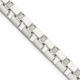Specifications: Material: Primary - Purity:925|Finish:Polished|Length of Item:22 in|Chain Length:22 in|Chain Type:Box|Chain Width:7 mm|Clasp /Connector:Lobster|Coating:Anti-tarnish|Feature:Solid|Manufacturing Process:Machine Made|Material: Primary:Sterling Silver|Width of Item:7 mm|Product Type:Jewelry|Jewelry Type:Necklaces|Sold By Unit:Each|Necklace Type:Chain Styles|Gender:Unisex|Material: Primary - Color:White