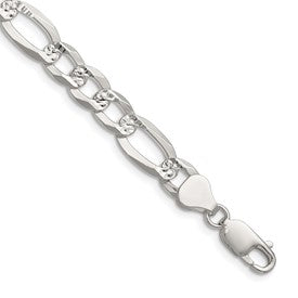Sterling Silver 8.0mm Flat D/C Pave Figaro Chain