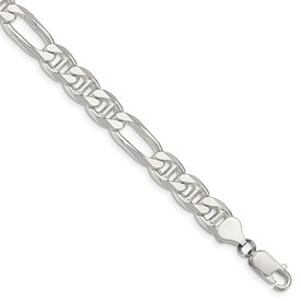 Specifications: Material: Primary - Purity:925|Finish:Polished|Length of Item:9 in|Chain Length:9 in|Chain Type:Anchor|Chain Width:7.75 mm|Clasp /Connector:Lobster|Coating:Anti-tarnish|Feature:Solid|Manufacturing Process:Casted|Material: Primary:Sterling Silver|Width of Item:7.75 mm|Product Type:Jewelry|Jewelry Type:Chains|Sold By Unit:Each|Bracelet Type:Chain Styles|Gender:Unisex|Material: Primary - Color:White|Chain Type 2:Figaro