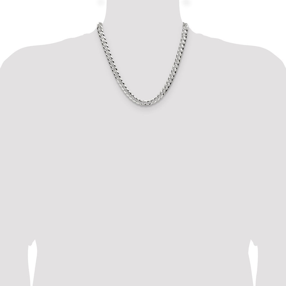 Specifications: Material: Primary - Purity:925|Finish:Polished|Length of Item:20 in|Chain Length:20 in|Chain Thickness:1.9 mm|Chain Type:Curb|Chain Width:8.25 mm|Clasp /Connector:Lobster|Clasp Thickness (Female end):3.2 mm|Clasp Thickness (Male end):3.7 mm|Clasp Width (Female end):7.9 mm|Clasp Width (Male end):7.5 mm|Material: Primary:Sterling Silver|Width of Item:8.25 mm|Product Type:Jewelry|Jewelry Type:Necklaces|Sold By Unit:Each|Necklace Type:Chain Styles|Gender:Unisex|Texture:Diamond-cut|Profile Type:Flat|Material: Primary - Color:White
