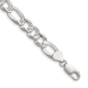 Specifications: Material: Primary - Purity:925|Finish:Polished|Length of Item:18 in|Chain Length:18 in|Chain Thickness:1.8 mm|Chain Type:Figaro|Chain Width:8.5 mm|Clasp /Connector:Lobster|Clasp Thickness (Female end):2.7 mm|Clasp Thickness (Male end):2.9 mm|Clasp Width (Female end):6.9 mm|Clasp Width (Male end):6.4 mm|Material: Primary:Sterling Silver|Width of Item:8.5 mm|Product Type:Jewelry|Jewelry Type:Chains|Sold By Unit:Each|Necklace Type:Chain Styles|Gender:Unisex|Texture:Diamond-cut|Profile Type:Flat|Material: Primary - Color:White