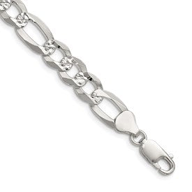 Sterling Silver 8.5mm Flat D/C Pave Figaro Chain