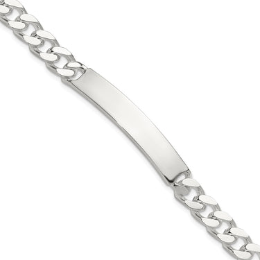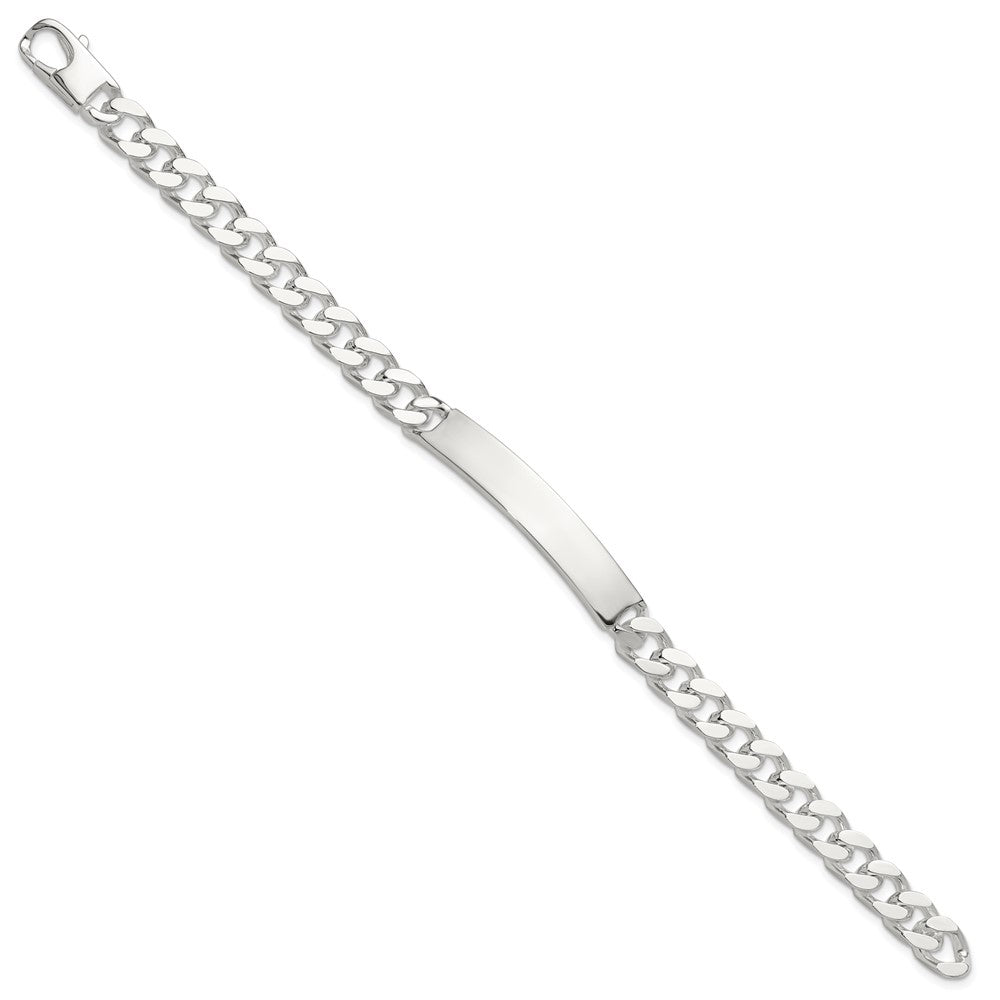 Specifications: Material: Primary - Purity:925|Finish:Polished|Length of Item:8 in|Chain Length:8 in|Chain Type:Curb|Chain Width:7.1 mm|Charm/Element Length:51.4 mm|Charm/Element Width:7.85 mm|Clasp /Connector:Lobster (Fancy)|Material: Primary:Sterling Silver|Width of Item:7.8 mm|Engravable:Yes|Product Type:Jewelry|Jewelry Type:Bracelets|Sold By Unit:Each|Bracelet Type:ID Bracelets|Gender:Unisex|Material: Primary - Color:White