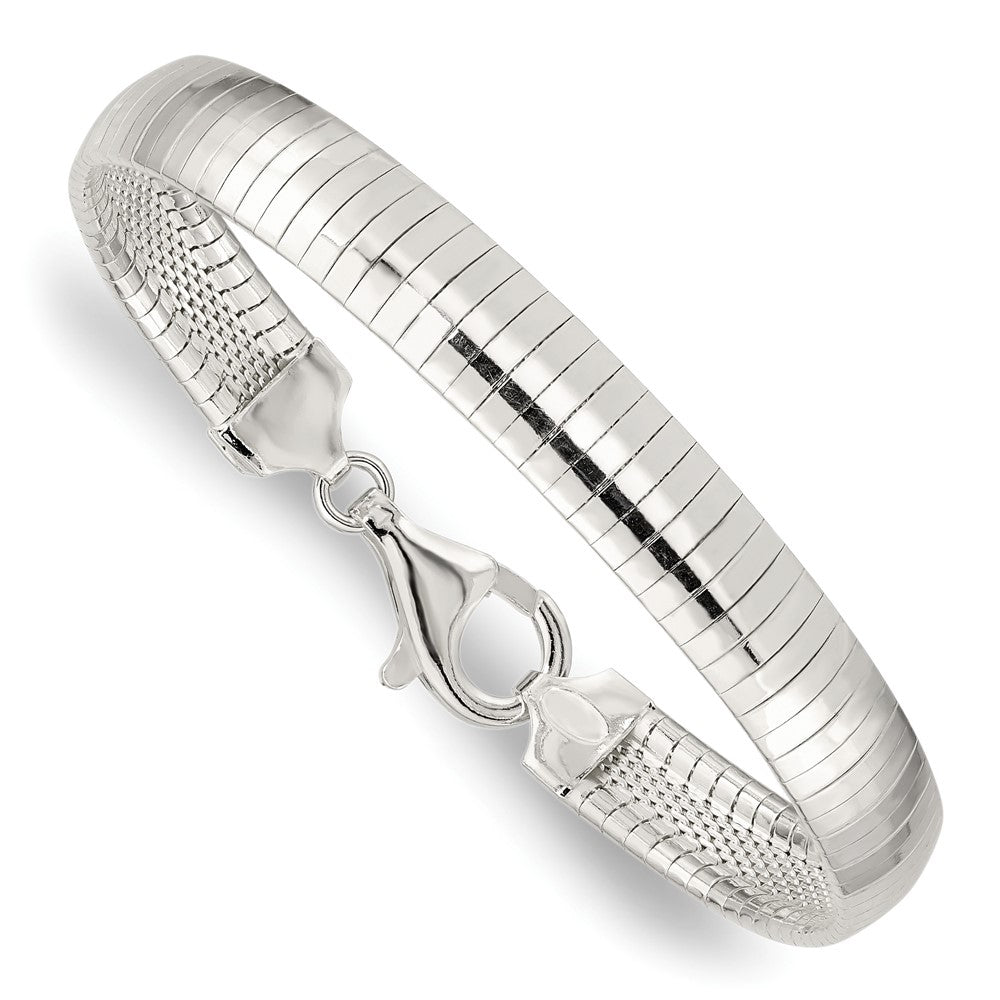 Specifications: Material: Primary - Purity:925|Finish:Polished|Length of Item:8 in|Chain Length:8 in|Chain Type:Link, Other|Chain Width:8 mm|Clasp /Connector:Lobster (Fancy)|Coating:Anti-tarnish|Feature:Solid|Manufacturing Process:Machine Made|Material: Primary:Sterling Silver|Width of Item:8 mm|Product Type:Jewelry|Jewelry Type:Bracelets|Sold By Unit:Each|Bracelet Type:Omega & Cubetto|Gender:Women's|Material: Primary - Color:White