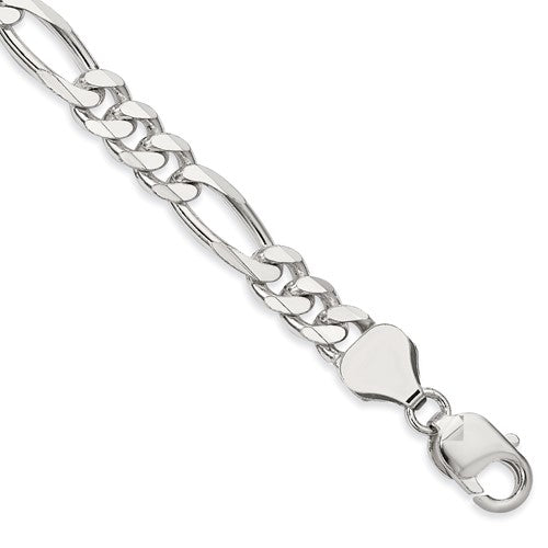 Specifications: Material: Primary - Purity:925|Finish:Polished|Length of Item:8 in|Chain Length:8 in|Chain Type:Figaro|Chain Width:8 mm|Clasp /Connector:Lobster|Clasp Thickness (Female end):3.4 mm|Clasp Thickness (Male end):3.6 mm|Clasp Width (Female end):7 mm|Clasp Width (Male end):6.3 mm|Coating:Anti-tarnish|Feature:Solid|Manufacturing Process:Casted|Material: Primary:Sterling Silver|Width of Item:8 mm|Product Type:Jewelry|Jewelry Type:Chains|Sold By Unit:Each|Bracelet Type:Chain Styles|Gender:Unisex|Material: Primary - Color:White