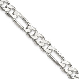 Specifications: Material: Primary - Purity:925|Finish:Polished|Length of Item:24 in|Chain Length:24 in|Chain Type:Figaro|Chain Width:8 mm|Clasp /Connector:Lobster|Clasp Thickness (Female end):3.4 mm|Clasp Thickness (Male end):3.6 mm|Clasp Width (Female end):7 mm|Clasp Width (Male end):6.3 mm|Coating:Anti-tarnish|Feature:Solid|Manufacturing Process:Casted|Material: Primary:Sterling Silver|Width of Item:8 mm|Product Type:Jewelry|Jewelry Type:Chains|Sold By Unit:Each|Necklace Type:Chain Styles|Gender:Unisex|Material: Primary - Color:White
