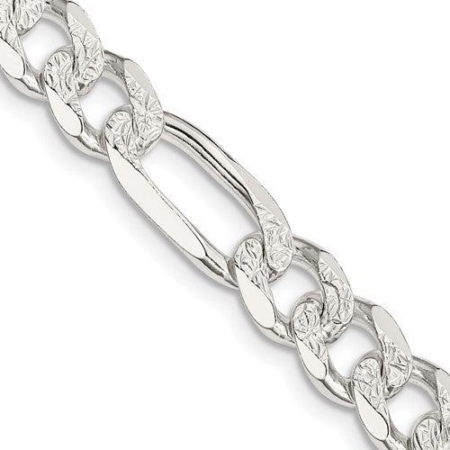 Specifications: Material: Primary - Purity:925|Finish:Polished|Length of Item:20 in|Chain Length:20 in|Chain Type:Figaro|Chain Width:8 mm|Clasp /Connector:Lobster|Coating:Anti-tarnish|Feature:Solid|Manufacturing Process:Casted|Material: Primary:Sterling Silver|Width of Item:8 mm|Product Type:Jewelry|Jewelry Type:Chains|Sold By Unit:Each|Necklace Type:Chain Styles|Gender:Unisex|Texture:Pave|Profile Type:Flat|Material: Primary - Color:White