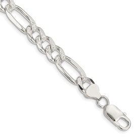 Specifications: Material: Primary - Purity:925|Finish:Polished|Length of Item:8 in|Chain Length:8 in|Chain Type:Figaro|Chain Width:8 mm|Clasp /Connector:Lobster|Coating:Anti-tarnish|Feature:Solid|Manufacturing Process:Casted|Material: Primary:Sterling Silver|Width of Item:8 mm|Product Type:Jewelry|Jewelry Type:Chains|Sold By Unit:Each|Bracelet Type:Chain Styles|Gender:Unisex|Texture:Pave|Profile Type:Flat|Material: Primary - Color:White