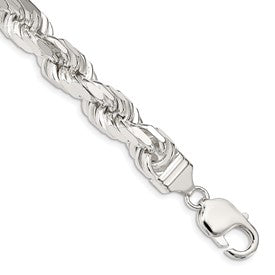 Sterling Silver 9.0mm Diamond-cut Rope Chain