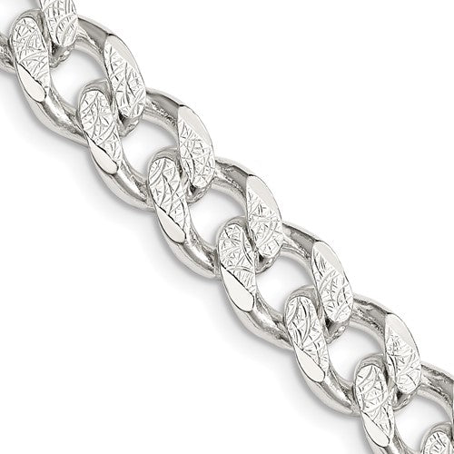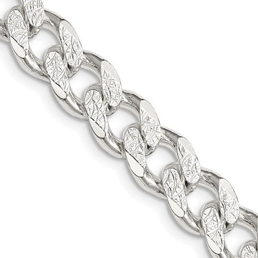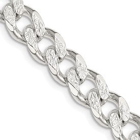 Specifications: Material: Primary - Purity:925|Finish:Polished|Length of Item:24 in|Chain Length:24 in|Chain Thickness:3.1 mm|Chain Type:Curb|Chain Width:9.3 mm|Clasp /Connector:Lobster|Clasp Thickness (Female end):4.4 mm|Clasp Thickness (Male end):4.1 mm|Clasp Width (Female end):9.1 mm|Clasp Width (Male end):9.1 mm|Coating:Anti-tarnish|Feature:Solid|Manufacturing Process:Casted|Material: Primary:Sterling Silver|Width of Item:9.3 mm|Product Type:Jewelry|Jewelry Type:Necklaces|Sold By Unit:Each|Necklace Type:Chain Styles|Gender:Unisex|Texture:Pave|Material: Primary - Color:White