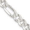 Specifications: Material: Primary - Purity:925|Finish:Polished|Length of Item:26 in|Chain Length:26 in|Chain Type:Figaro|Chain Width:9.5 mm|Clasp /Connector:Lobster|Coating:Anti-tarnish|Feature:Solid|Manufacturing Process:Casted|Material: Primary:Sterling Silver|Width of Item:9.5 mm|Product Type:Jewelry|Jewelry Type:Chains|Sold By Unit:Each|Necklace Type:Chain Styles|Gender:Unisex|Texture:Pave|Profile Type:Flat|Material: Primary - Color:White