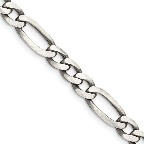 Sterling Silver Antiqued 6.5mm Figaro Chain
