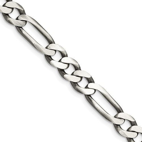 Sterling Silver Antiqued 7.5mm Figaro Chain