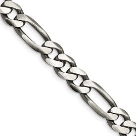 Sterling Silver Antiqued 7.75mm Figaro Chain