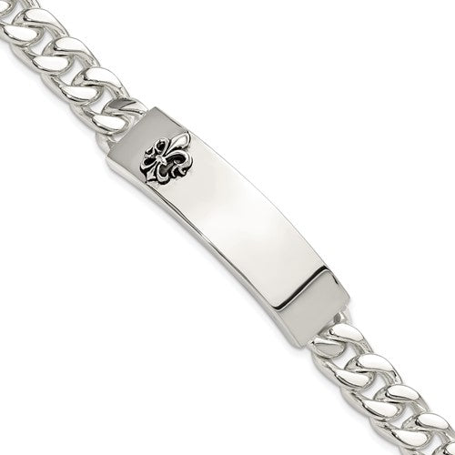 Sterling Silver Antiqued Fleur-de-lis ID Men's Bracelet