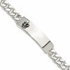 Specifications: Material: Primary - Purity:925|Finish:Polished|Length of Item:8.5 in|Material: Accents:Enamel|Material: Accent Color 1:Black|Chain Length:8.5 in|Chain Type:Curb|Chain Width:9.1 mm|Charm/Element Length:58.6 mm|Charm/Element Width:12.65 mm|Clasp /Connector:Box Catch|Material: Primary:Sterling Silver|Width of Item:12.7 mm|Engravable:Yes|Product Type:Jewelry|Jewelry Type:Bracelets|Sold By Unit:Each|Bracelet Type:ID Bracelets|Gender:Men's|Material: Primary - Color:White