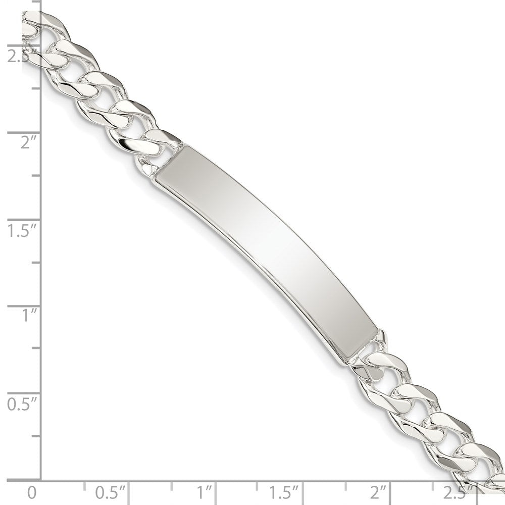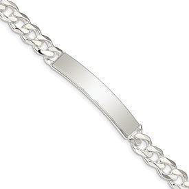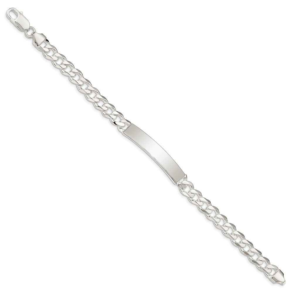 Specifications: Material: Primary - Purity:925|Finish:Polished|Length of Item:8 in|Chain Length:8 in|Chain Type:Curb|Chain Width:7.5 mm|Clasp /Connector:Lobster|Feature:Solid|Manufacturing Process:Casted|Material: Primary:Sterling Silver|Width of Item:6 mm|Engravable:Yes|Product Type:Jewelry|Jewelry Type:Bracelets|Sold By Unit:Each|Bracelet Type:ID Bracelets|Material: Primary - Color:White