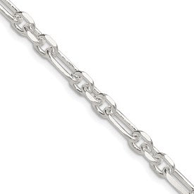 Sterling Silver D/C 6mm 3 Short Plus 1 Long Cable Link Chain
