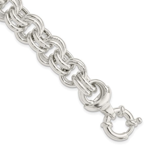 Specifications: Material: Primary - Purity:925|Finish:Polished|Length of Item:8 in|Chain Length:8 in|Chain Type:Link, Other|Chain Width:15 mm|Clasp /Connector:Spring Ring (Fancy)|Feature:Solid|Manufacturing Process:Tubing|Material: Primary:Sterling Silver|Item Weight U/M:gm|Width of Item:15 mm|Product Type:Jewelry|Jewelry Type:Bracelets|Sold By Unit:Each|Bracelet Type:Links|Gender:Unisex|Material: Primary - Color:White