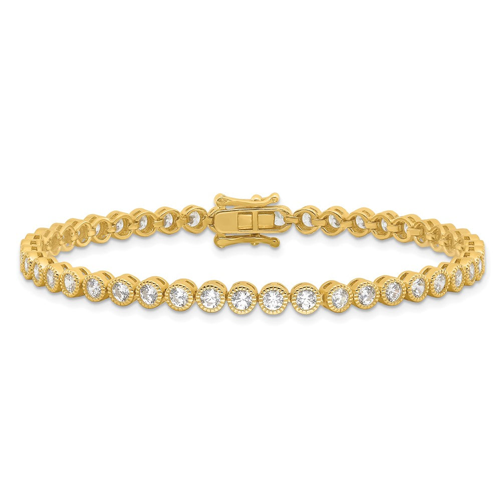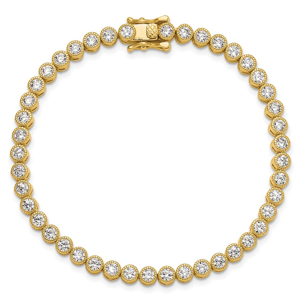 Sterling Silver Gold-tone 4mm Round CZ 7.5in Tennis Bracelet