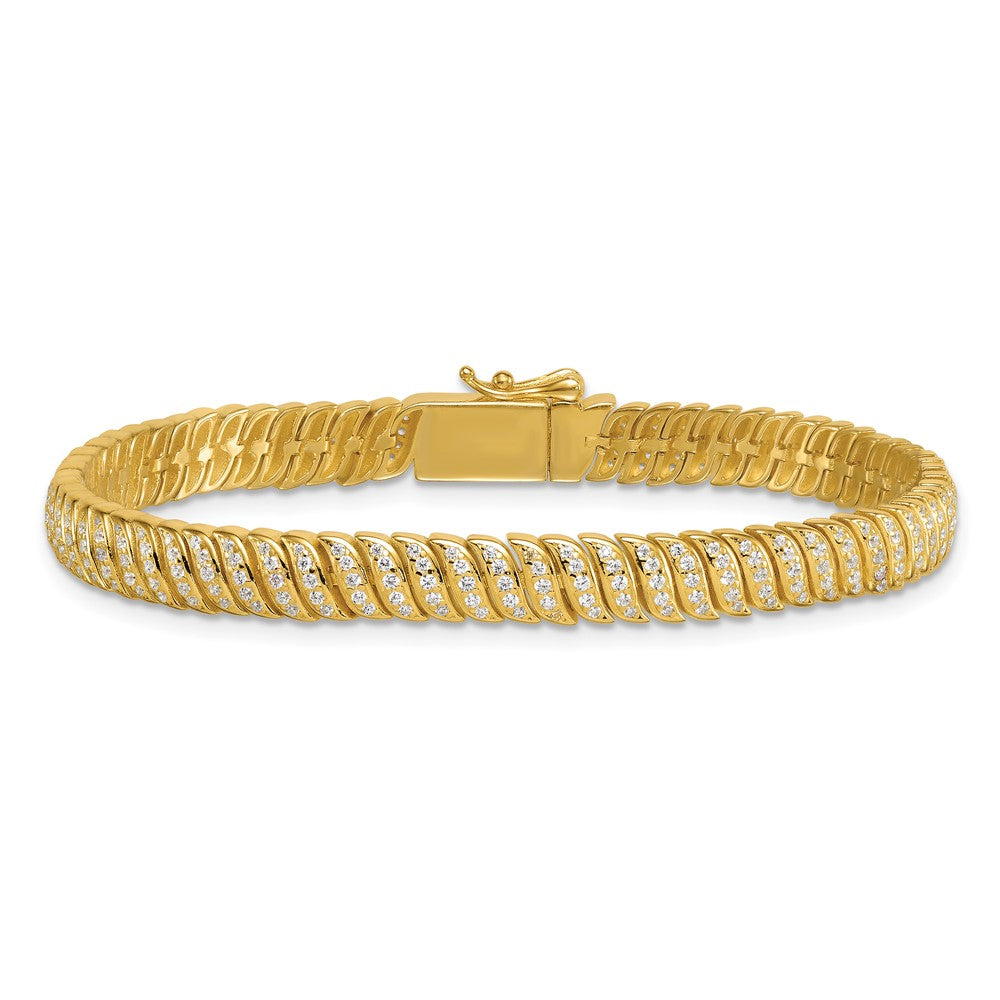 Sterling Silver Gold-Tone Polished Fancy CZ S-Link 7 Inch Bracelet